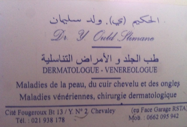 Le cabinet de Dermatologie du docteur TALAA, localisé à DJASR KASENTINA, dans la wilaya d'ALGER vous accueille de 08:30h à 15:00h, vous trouverez ci-dessous tous les actes pratiqués et les pathologies traitées par cet établissement.