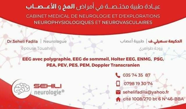 Le cabinet de Neurologie du docteur F SEHILI, localisé à BORDJ BOU ARRERIDJ, dans la wilaya de BORDJ BOU ARRERIDJ vous accueille de 08:00h à 16:30h, vous trouverez ci-dessous tous les actes pratiqués et les pathologies traitées par cet établissement.
