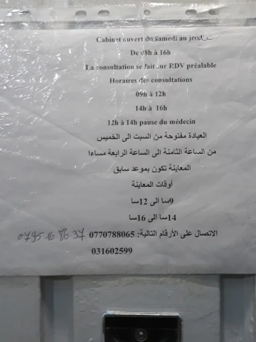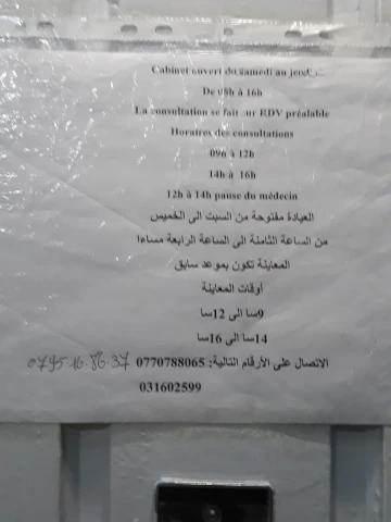 Le cabinet de Pédiatrie du docteur HASSIBA SOHBI, localisé à CONSTANTINE, dans la wilaya de CONSTANTINE vous accueille de 09:00h à 16:00h, vous trouverez ci-dessous tous les actes pratiqués et les pathologies traitées par cet établissement.