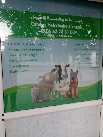 Le cabinet vétérinaire L'ESPOIR du docteur CHEKATI, localisé à BOUMAHRA AHMED, dans la wilaya de GUELMA vous accueille de 09:00h à 17:00h, vous trouverez ci-dessous tous les actes pratiqués et les pathologies traitées par cet établissement.
