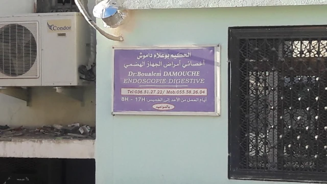 Le cabinet de Gastro entérologie et hépatologie du docteur Boualem DAMOUCHE, localisé à AIN OULMENE, dans la wilaya de Setif vous accueille de 08:00h à 17:00h, vous trouverez ci-dessous tous les actes pratiqués et les pathologies traitées par cet établissement.