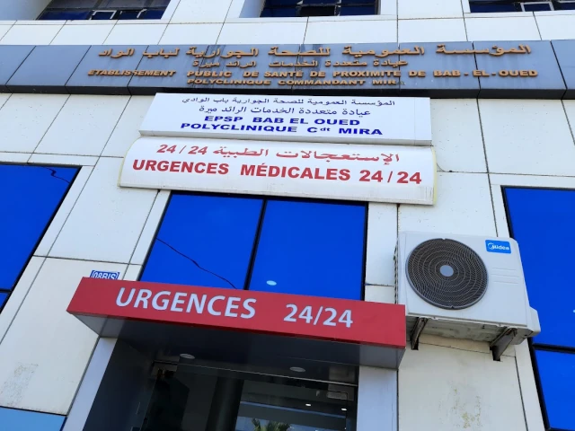 La polyclinique de BAB EL OUED - COMMANDANT MIRA, localisée à BAB EL OUED, dans la wilaya d'ALGER est ouverte 24/24H, vous trouverez ci-dessous tous les actes pratiqués et les pathologies traitées par cet établissement.