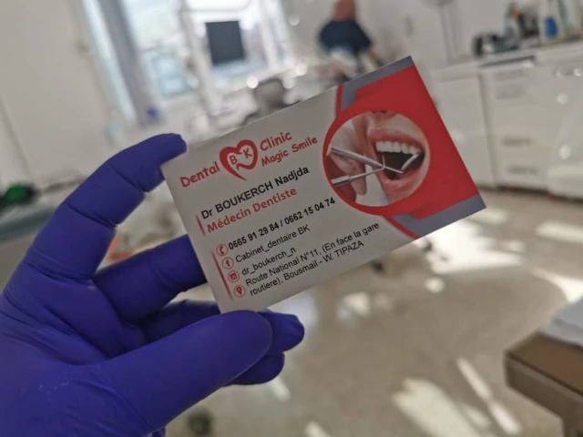 Le cabinet de Chirurgie dentaire du docteur BOUKERCH, localisé à BOUISMAIL, dans la wilaya de TIPAZA vous accueille de 08:00h à 17:00h, vous trouverez ci-dessous tous les actes pratiqués et les pathologies traitées par cet établissement.