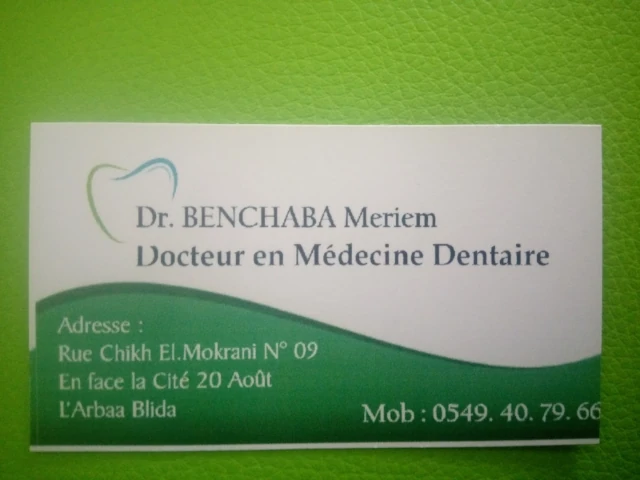 Le cabinet de Chirurgie dentaire du docteur BEN CHABA, localisé à LARBAA, dans la wilaya de BLIDA vous accueille de 08:00h à 18:00h, vous trouverez ci-dessous tous les actes pratiqués et les pathologies traitées par cet établissement.