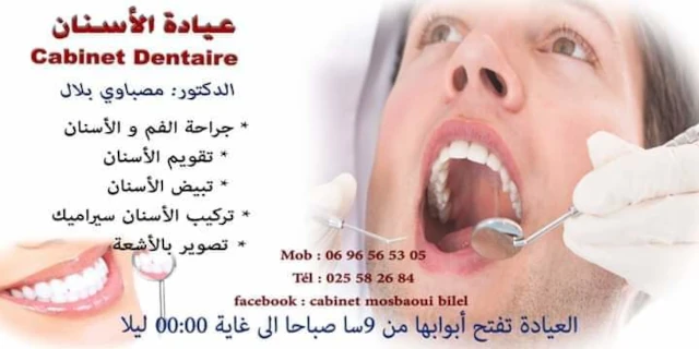 Le cabinet de Chirurgie dentaire du docteur BILEL MOSBAOUI, localisé à MEDEA, dans la wilaya de MEDEA vous accueille de 09:00h à 23:00h, vous trouverez ci-dessous tous les actes pratiqués et les pathologies traitées par cet établissement.