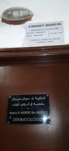 Le cabinet de Dermatologie du docteur N AMROUCHE MAOUCHE, localisé à BAB EL OUED, dans la wilaya d'ALGER vous accueille de 08:00h à 17:00h, vous trouverez ci-dessous tous les actes pratiqués et les pathologies traitées par cet établissement.