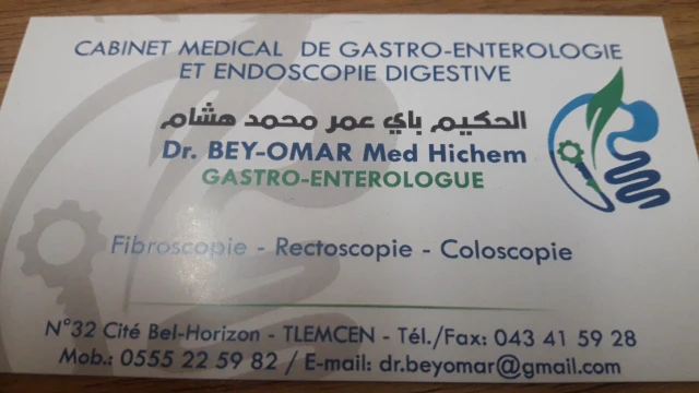 Le cabinet de Gastro entérologie et hépatologie du docteur MOHAMED HICHEM BEY OMAR, localisé à TLEMCEN, dans la wilaya de TLEMCEN vous accueille de 08:00h à 16:30h, vous trouverez ci-dessous tous les actes pratiqués et les pathologies traitées par cet établissement.