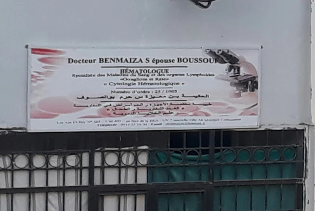 Le Laboratoire d'analyses médicales spécialisé en hématologie du docteur S BEN MAIZA BOUSSOUF, localisé à EL KHROUB, dans la wilaya de CONSTANTINE vous accueille de 08:30h à 14:30h, vous trouverez ci-dessous tous les actes pratiqués et les pathologies traitées par cet établissement.
