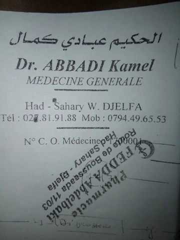 Le cabinet de Médecine générale du docteur KAMEL ABBADI, localisé à HAD SAHARY, dans la wilaya de DJELFA vous accueille de 08:00h à 16:00h, vous trouverez ci-dessous tous les actes pratiqués et les pathologies traitées par cet établissement.