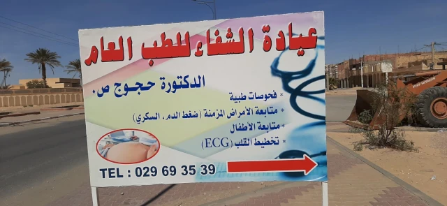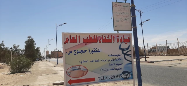 Le cabinet de Médecine générale CHIFA, localisé à ZAOUIA EL ABIDIA, dans la wilaya de TOUGGOURT vous accueille de 08:00h à 21:00h, vous trouverez ci-dessous tous les actes pratiqués et les pathologies traitées par cet établissement.