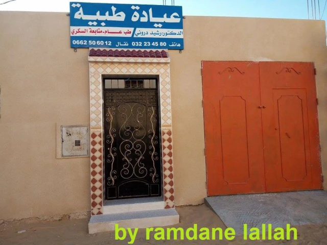 Le cabinet de Médecine générale du docteur RASHID DROUNI, localisé à GUEMAR, dans la wilaya d'EL OUED vous accueille de 08:00h à 16:00h, vous trouverez ci-dessous tous les actes pratiqués et les pathologies traitées par cet établissement.