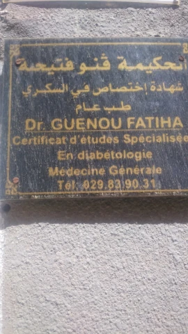 Le cabinet de Médecine générale du docteur FATIHA GUENOU, localisé à BOUNOURA, dans la wilaya de GHARDAIA vous accueille de 08:00h à 14:00h, vous trouverez ci-dessous tous les actes pratiqués et les pathologies traitées par cet établissement.
